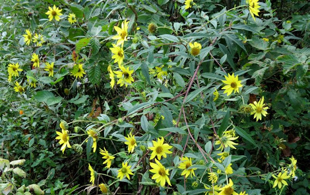Above are some of the scenes I saw last week while taking a walk. There are all kinds of berries, some of the berries I recognize are the pretty purple Devil's Walking stick berries, there are still some wild flowers blooming, a few different flycatchers showing up, some warblers are moving south and my pretty favorite.. the Red-Breasted Nuthatch.