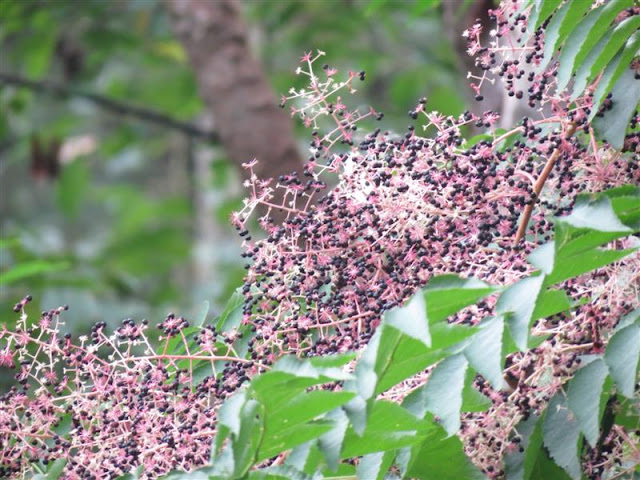 These are the Devil's walking stick berries and the warblers seem to love them.