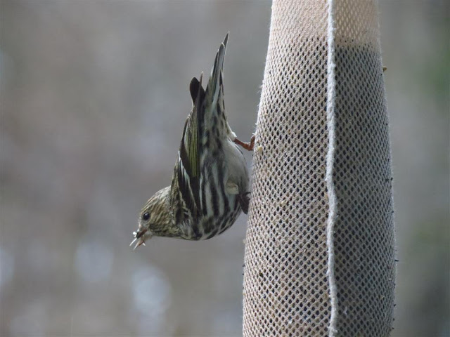 The Pine Siskins are one of the irruptive year birds, they visit in the winter only during certain years. They are always welcome in my yard and at my feeders. They can even bring more of their friends.