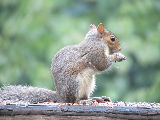 I see lots of these guys/girls in my yard. This squirrel is in heaven pigging out on my birdseed.