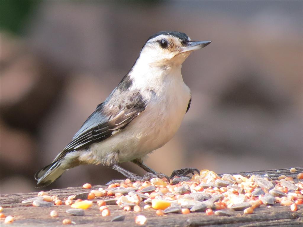 A White Breasted Nuthatch is one of my year round visitors.