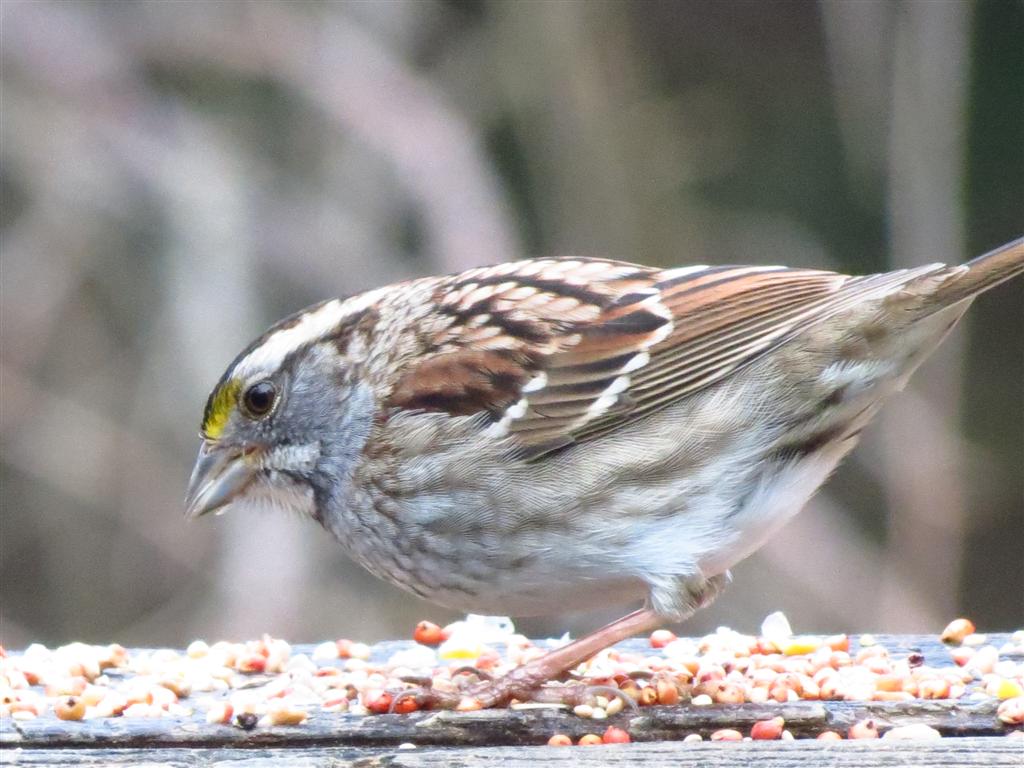 One of my pretty White-throated Sparrows, they are a winter bird. I guess that is why I am still seeing them. They know winter has not left yet.