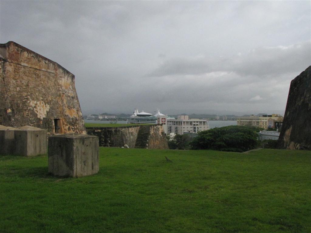 Our first port of call during this Caribbean cruise was San Juan, Puerto Rico. From the fort we could see an iguana on the grass and our ship in the distance.