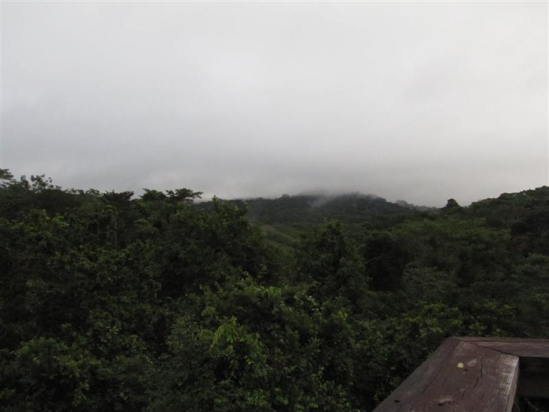Hubby was happy to be above the tree line looking at the rainforest below us and I was excited to see some new birds. At the top of the tower we were almost in the clouds, we did manage to find a Bat Falcon and a Black Vulture perched in a tree together. Also, we watched a woodpecker fly away, it was either the Linneated or the Crimson-chested. they both remind me of the Pileated Woodie I see at home. We could hear the Howler monkeys in the distance.