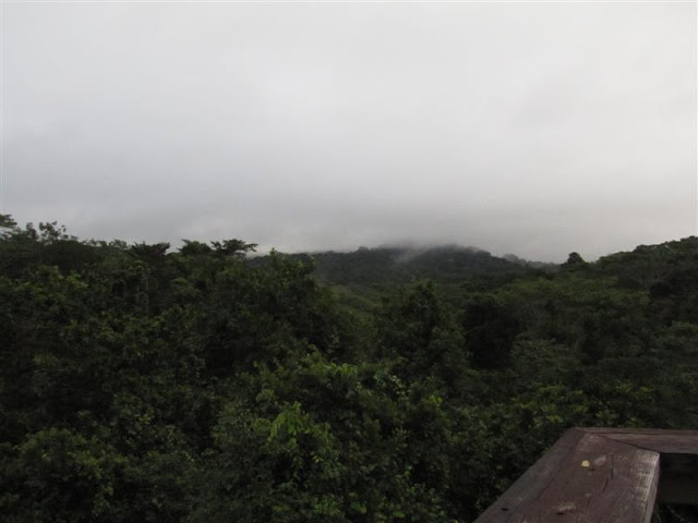 We woke up early on a cloudy Saturday morning to meet our guide at 6am Justo was taking us to see the Discovery Center's tower our first stop for birding. So you could see the tower we climbed up to get a birds eye view, I scanned a copy of the photo from THE VISITOR newspaper. We were lucky it was only cloudy, it is their rainy season.