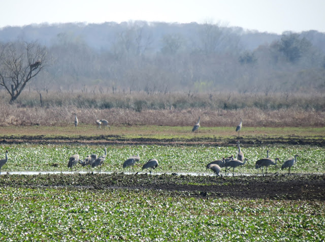A very distant look at the Sandhill Cranes and one brighter white Crane that may possibly be the Whooping Crane. It was seen at this park on the day we went.