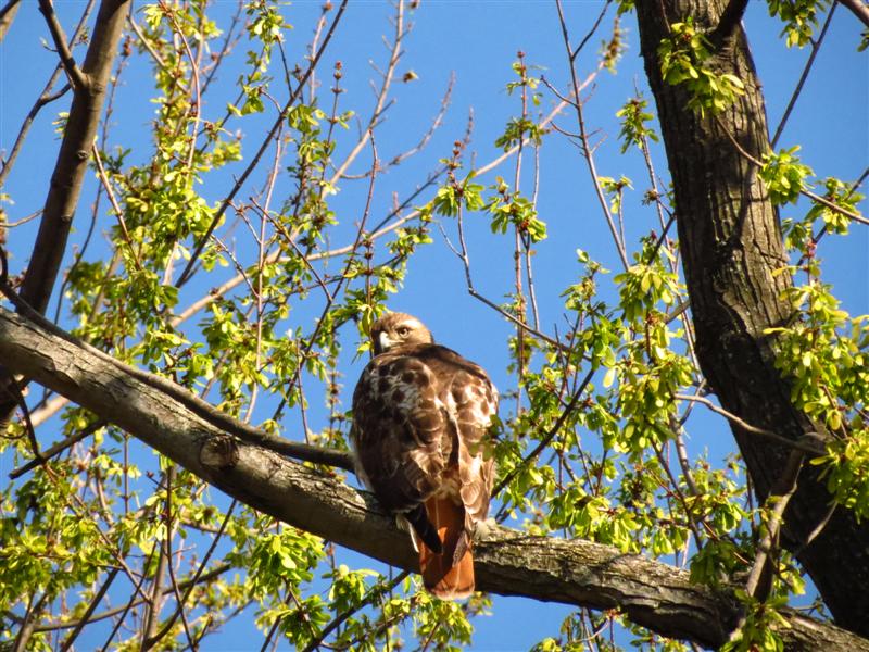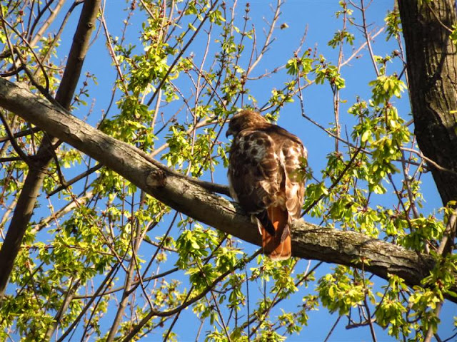 I am pretty sure this is a Red-tailed hawk. Hubby and I saw him or her while walking around Kirby Park in Wilkes Barre, Pa this weekend.