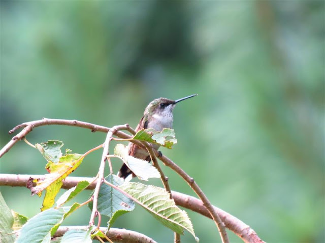 The female has taken over the duties of being the guardian of my hummingbird feeders. She is chasing away some of the other hummers that enter her domain.