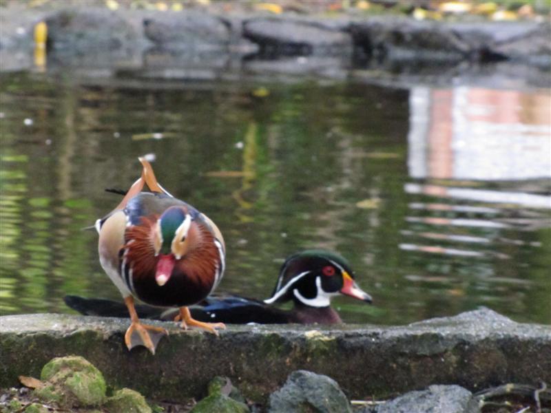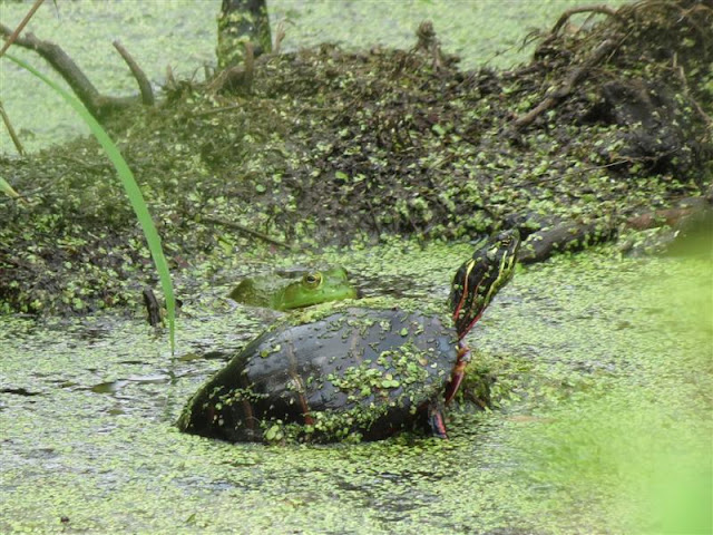 These two are not preening but I liked this shot. When I took the shot I only saw the red-eared slider turtle, after I downloading my photos I saw the cute frog next to the turtle.