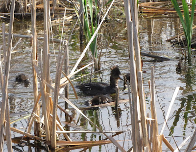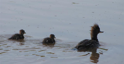 From my archives this weeks Watery Wednesday and Outdoor Wednesday post I have some pic's of a female Hooded Merganser with her cute chicks. The Mergansers were seen during one of my bird club walks at a nature center last spring.