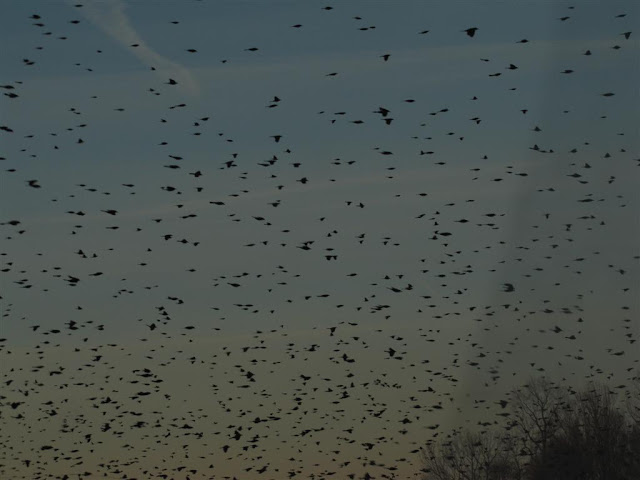 These are some shots of a large flock of Blackbirds seen while driving on the back roads here in Maryland. It was the weekend hubby and I were on the way to see the eagles at Conowingo and to see if any ducks were at HavredeGrace. And while we are in the area we always enjoy a crab cake dinner at McGregors in Havrede Grace.