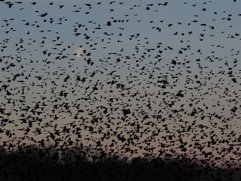 You can see the Red-winged Blackbirds mixed in with this large group. Maybe some Grackles too?