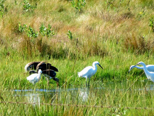 More from Chincoteague NWR, Snowy Egrets and a few juvenile White Ibis...At first I posted they were juvenile Glossy Ibis.