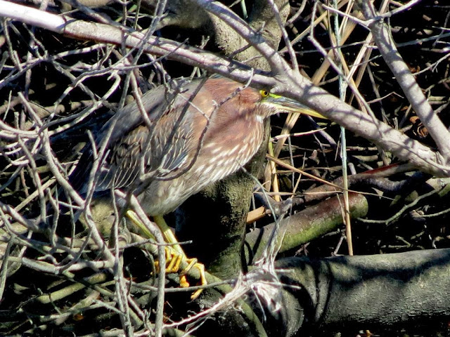 A green heron hiding in the bare branches...see in Chincoteague NWR.