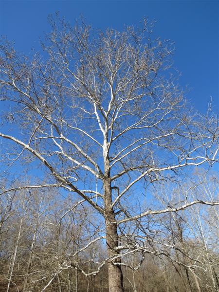 Hubby and I were trying to figure out what kind of tree this is? It had these little round balls hanging on the branches that the birds were picking at?