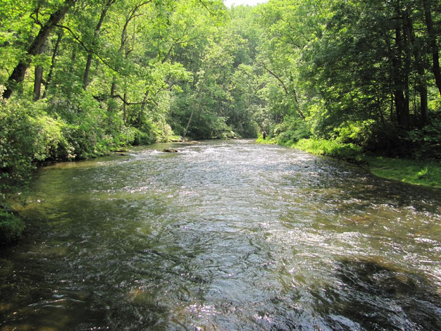 This week hubby and I hiked down the trail to the Gunpowder River to see the mountain laurels in bloom. The trail along the river has an amazing amount of white and pink mountain laurels blooming. The weather was great for hiking and we sat and watched some kayakers playing around in the white water area of the river. It is also a river popular with the trout fishermen and people tubing.