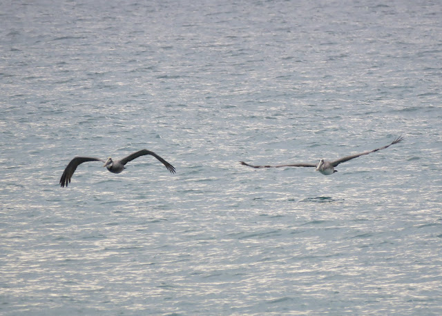 While hubby was enjoying watching the waves hitting the rocks, I was enjoying the pelicans flying by me.
